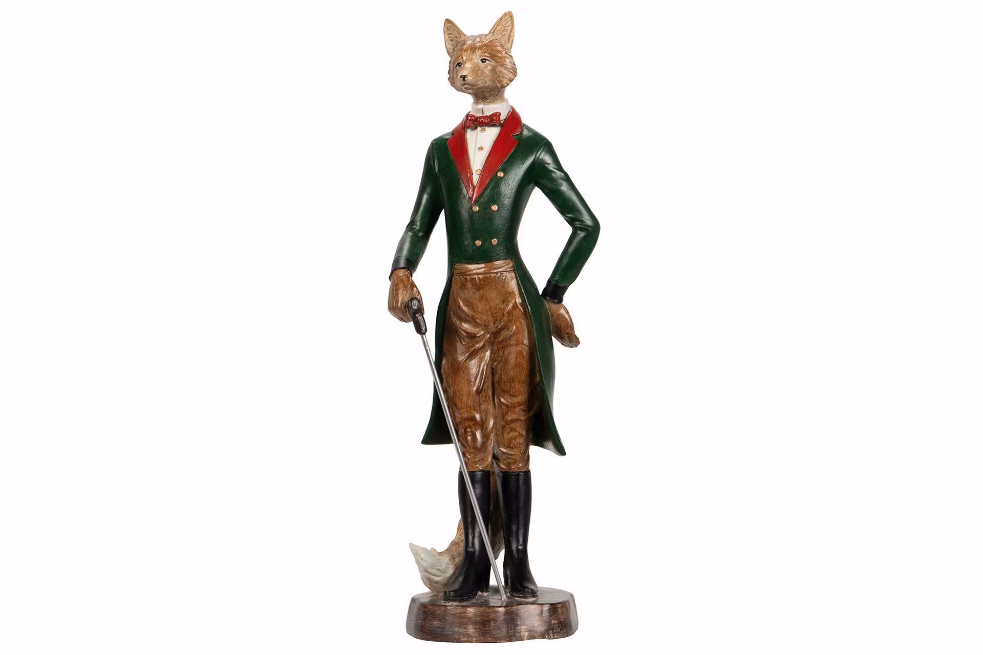 Räv i frack med en promenadkäpp. En lekfull dekoration som ger hemmet en mer personlig stil. Tillverkad i poly.13x37