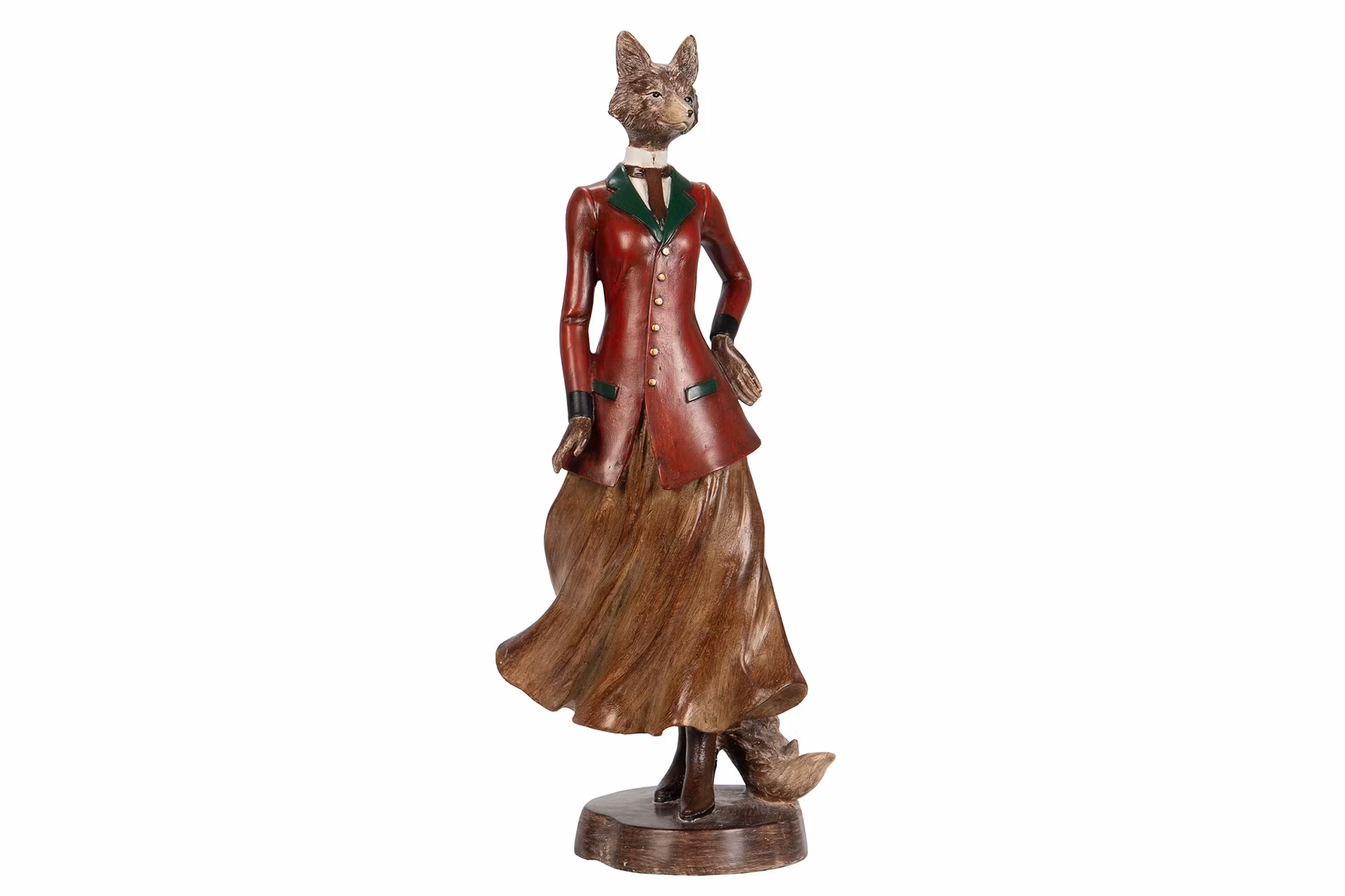 Räv i kjol och kavaj. En lekfull dekoration som ger hemmet en mer personlig stil. Tillverkad i poly.17x37