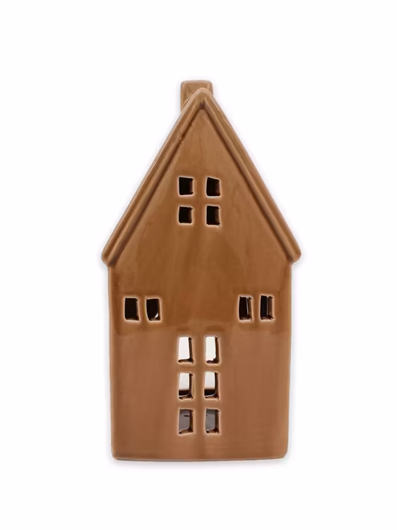 keramik hus avsett för led ljus i fin nougat färg 9,1x7,6x17,6