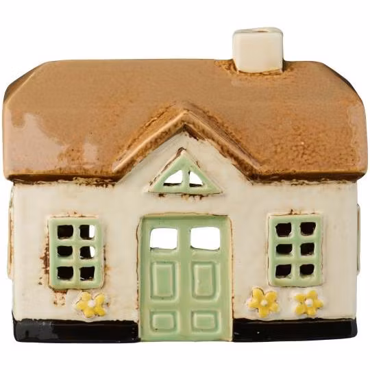 Ett vackert litet kermikhus avsett för värmeljus med inspiration från danska små byahus.Varje hus är unikt med många fina små detaljer på.B: 8 H: 11 L: 12