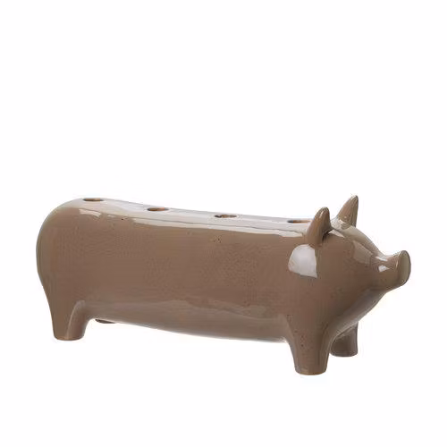 En riktigt fin julegris i form av adventsljusstake, i en brunmelerad färg.
