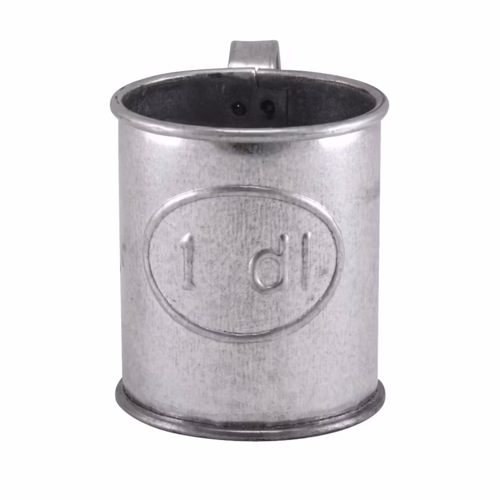 Gammaldags decilitermått i zink. Maskindisk rekommenderas ej. Endast för torra varor.
