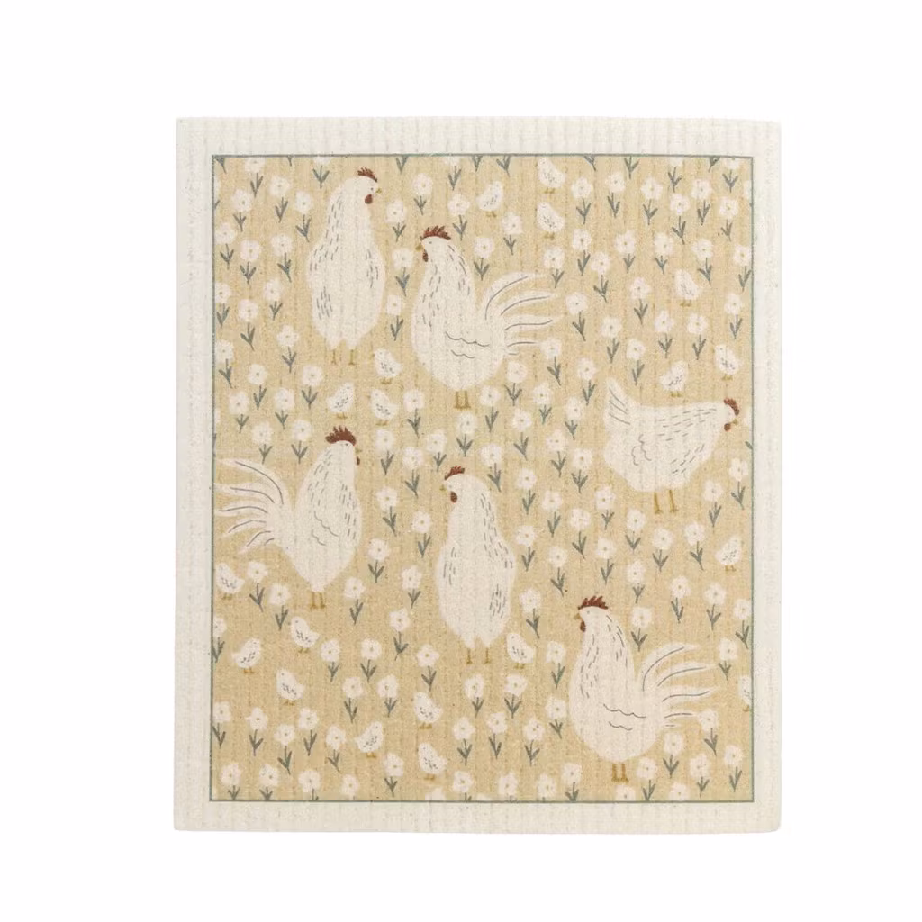 Klassisk, svensktillverkad wettextrasa i 70 % cellulosa och 30 % bomull, med ett charmigt hönsmotiv. Mjuk och absorberande när den är blöt. Slitstark, maskintvä