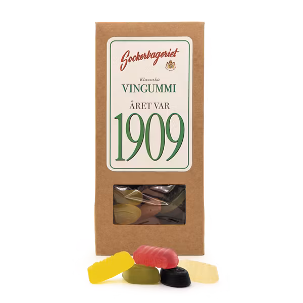 Klassiskt engelskt vingummigodis i olika supergoda smaker.