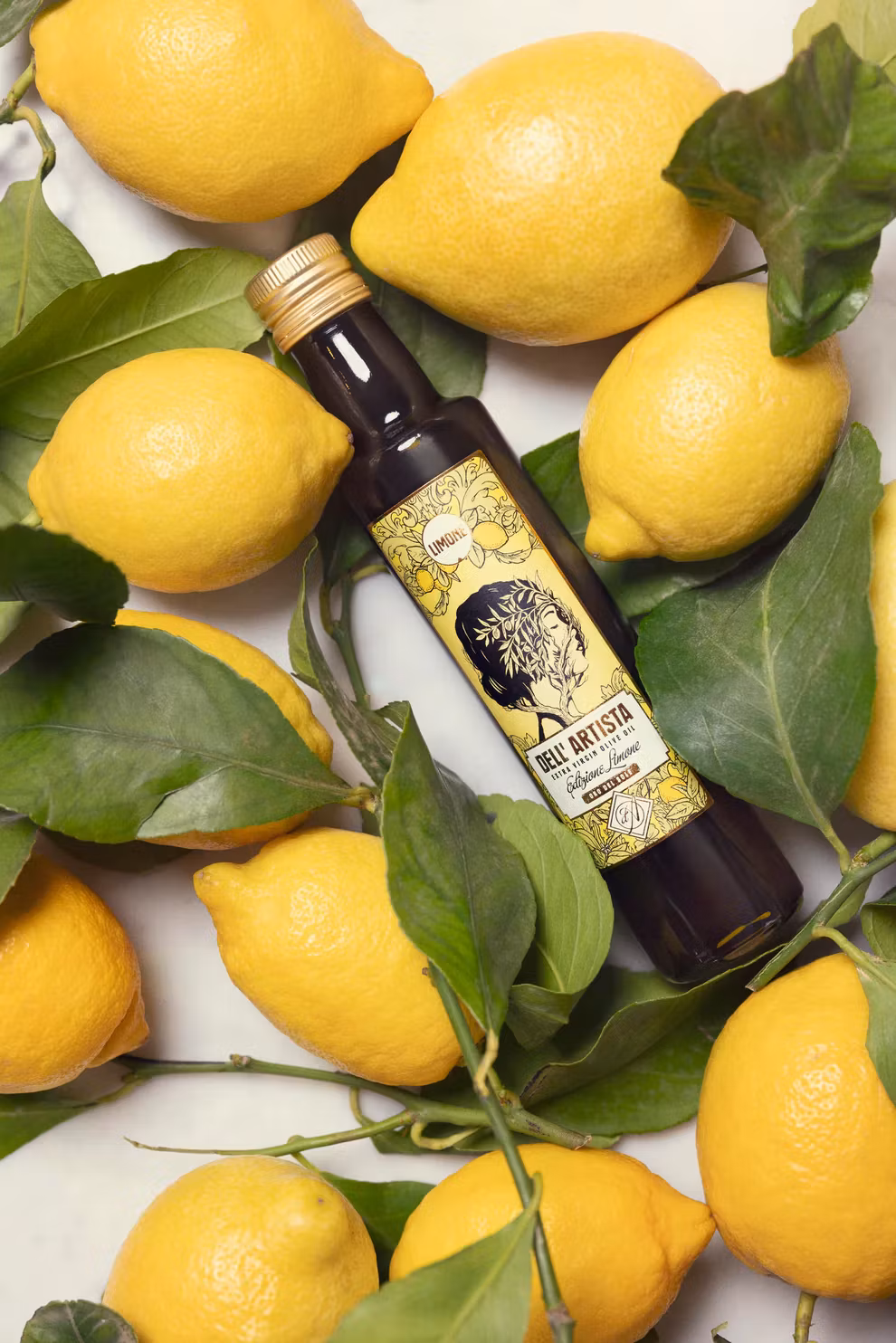 Dell’ Artista Edizione Limone extra virgin olivolja är gjord på en blandning av Biancolilla Cerasuolaoliver från Trapaniområdet och Nocellara del Beliceoliver som odlas i bergen runt Palermo och härligt doftande sicilianska citroner. Fin fruktighet och nötighet från olivolja blandas perfekt med fräschheten från citronen.