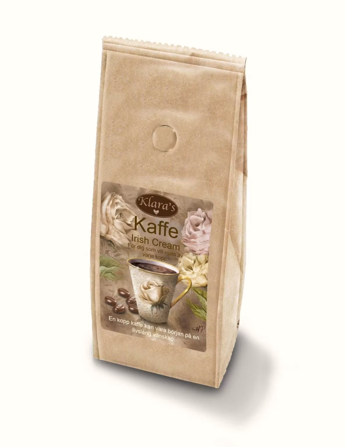 BeskrivningKaffe med en smak av Irish Cream. 200 gKaffe för den som vill njuta av varje kopp i fin presentförpackning gjord av Annica Petterson.Detta kaffe