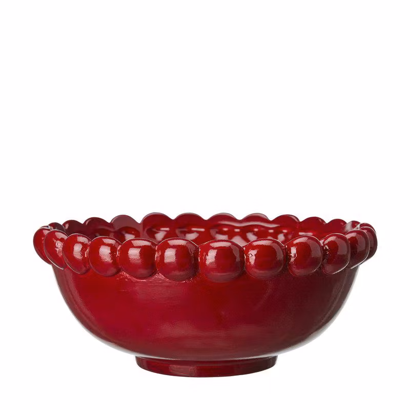 Panteringskål i fin julröd färg , dolmit material. 26X10 diam 23