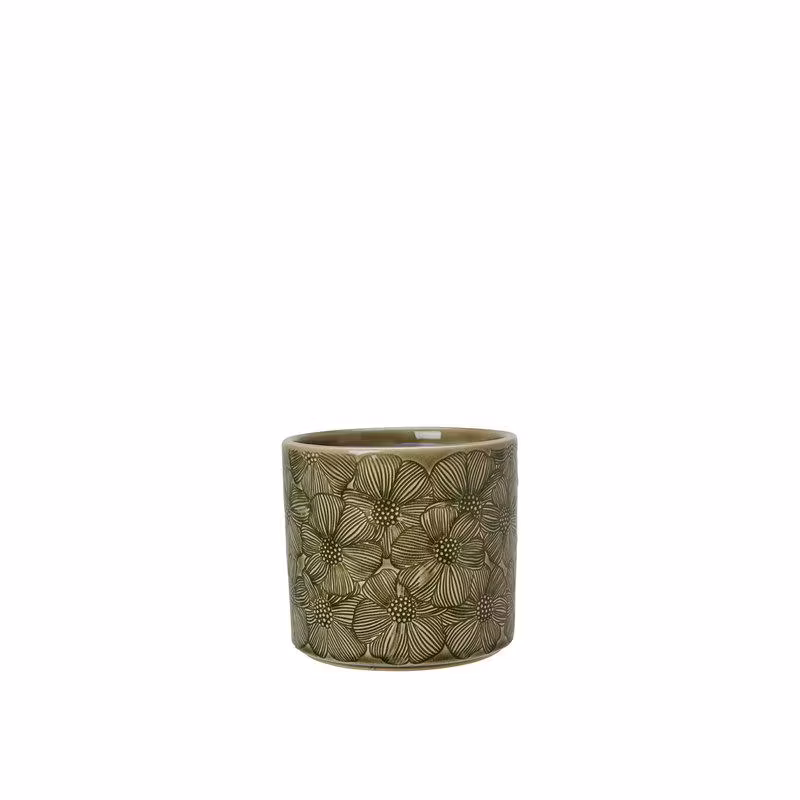 Fint mönstrad kruka i grönt stengods 14x12 dia 15,5