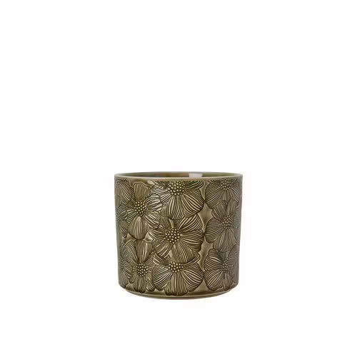 Mönstrad grön kruka i stengods 17x15 dia 15,5