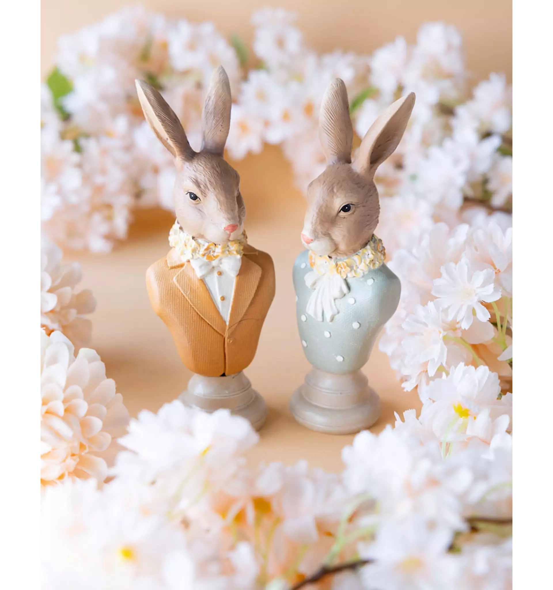 Liten byst som en kanin i vårens härliga färger . Tillverkad i poly kille7x5x19cm/ tjej 6x5x18cmsäljes var för sig.